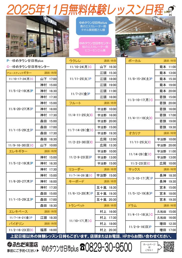 11月は下記の通り体験レッスンを行います。